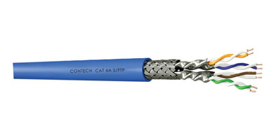 CONTECH's Category 6A S/FTP cables exceed Category 6A / Class E A specification. It is tested to 500 MHz frequency range and designed to support 10 Gigabyte applications to full 100 m. Extremely high pair-balance providing excellent EMC (Electro Magnetic compatibility), minimizing radiation, maximizing noise immunity and providing high alien cross talk performance to F/FTP cabling systems. S/FTP (Twisted Pair – overall shielded and individual Foil shield) cabling systems are installed for improved Alien Cross talk performance.