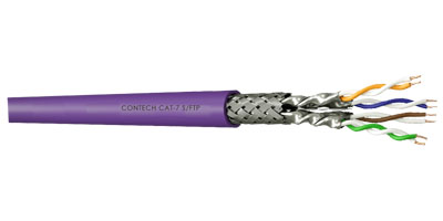 CONTECH's Category 7 S/FTP cables exceed Category 7/ Class F specification maximizing the user’s return on investment, by extending the life of the system. It is tested to 600 MHz frequency range and designed to support 10 Gigabyte applications. S/FTP construction with individual foiled pair and an overall braid offering superior performance in terms of ACR.It supports all Ethernet applications up to 1000 Base-T and CATV applications upto 862 Mhz.
